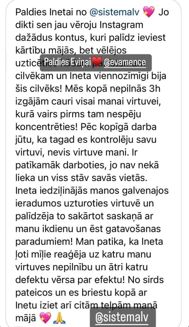 Palīdzu atklāt katras telpas potenciālu: vai tas ir skapis, virtuve, garāža vai darba vieta! Galvenais ir sākt, kārtības ieviešana ir burvīgs process, kuru piedzīvosim kopā!