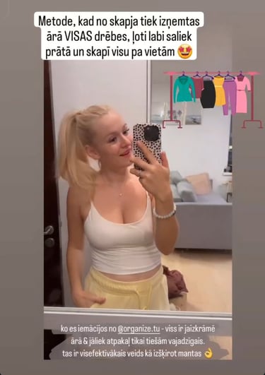 Apģērbu organizēšana, dažādu telpu radoši un tehniski risinājumi ir mani mīļākie kārtošanas izaicinājumi.