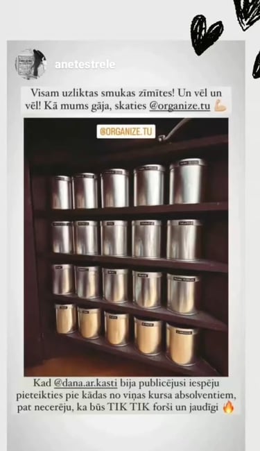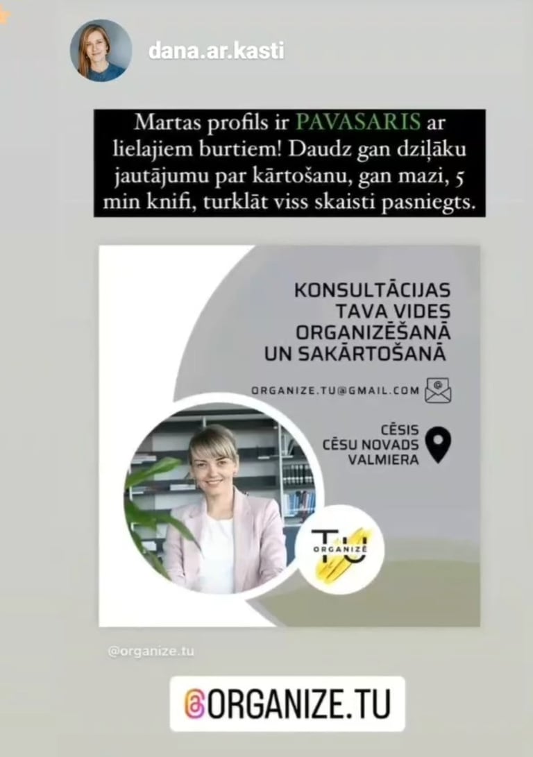Ar aizrautību un prieku palīdzēšu Tev saprast, kas der tieši Tev un Tavai ģimenei, kā sakārtot izvēlēto zonu, lai ikdienā būtu vairāk laika Tev svarīgām nodarbēm un hobijiem un mazāk raižu par bardaku.